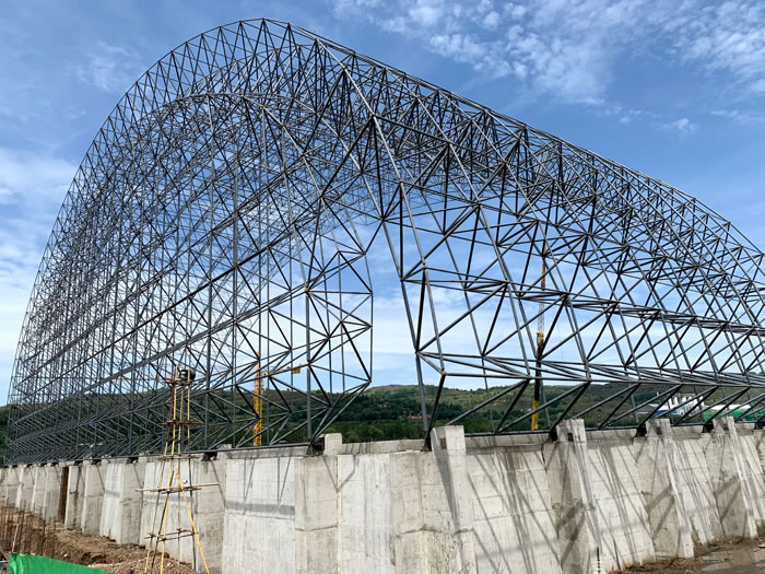 (2)网架加工前应对现场尺寸进行复测,确认无误后方可进行加工、安装;网架制作、运输、安装应遵守《空间网格结构技术规程》JGJ7-2010、《钢网架遂宁螺栓球节点》JG/T 10-2009、《钢网架遂宁螺栓球节点用高强度螺栓》 GB/T 16939-2016、《遂宁钢结构遂宁工程遂宁施工规范》 GB50755-2012、《遂宁钢结构遂宁工程施工质量验收标准》 GB50205-2020。